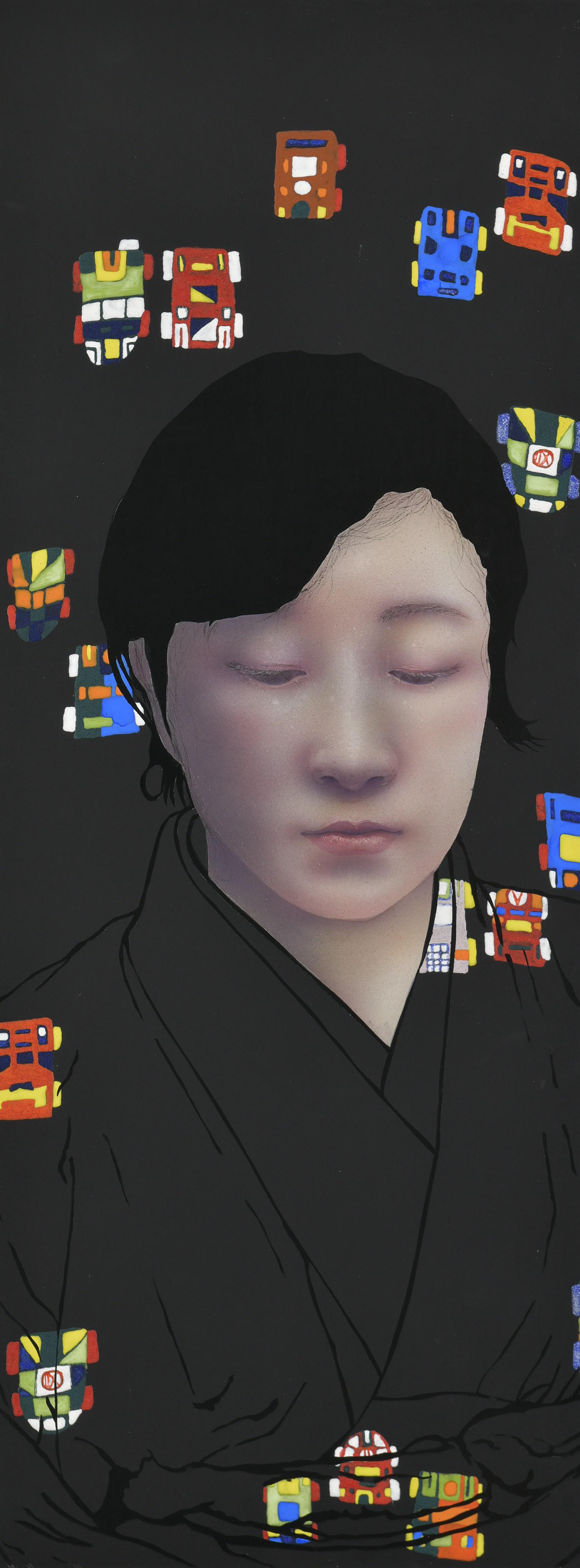 70×26.5㎝、綿布、ピグメント、岩絵具 アクリル絵の具、箔、2025年