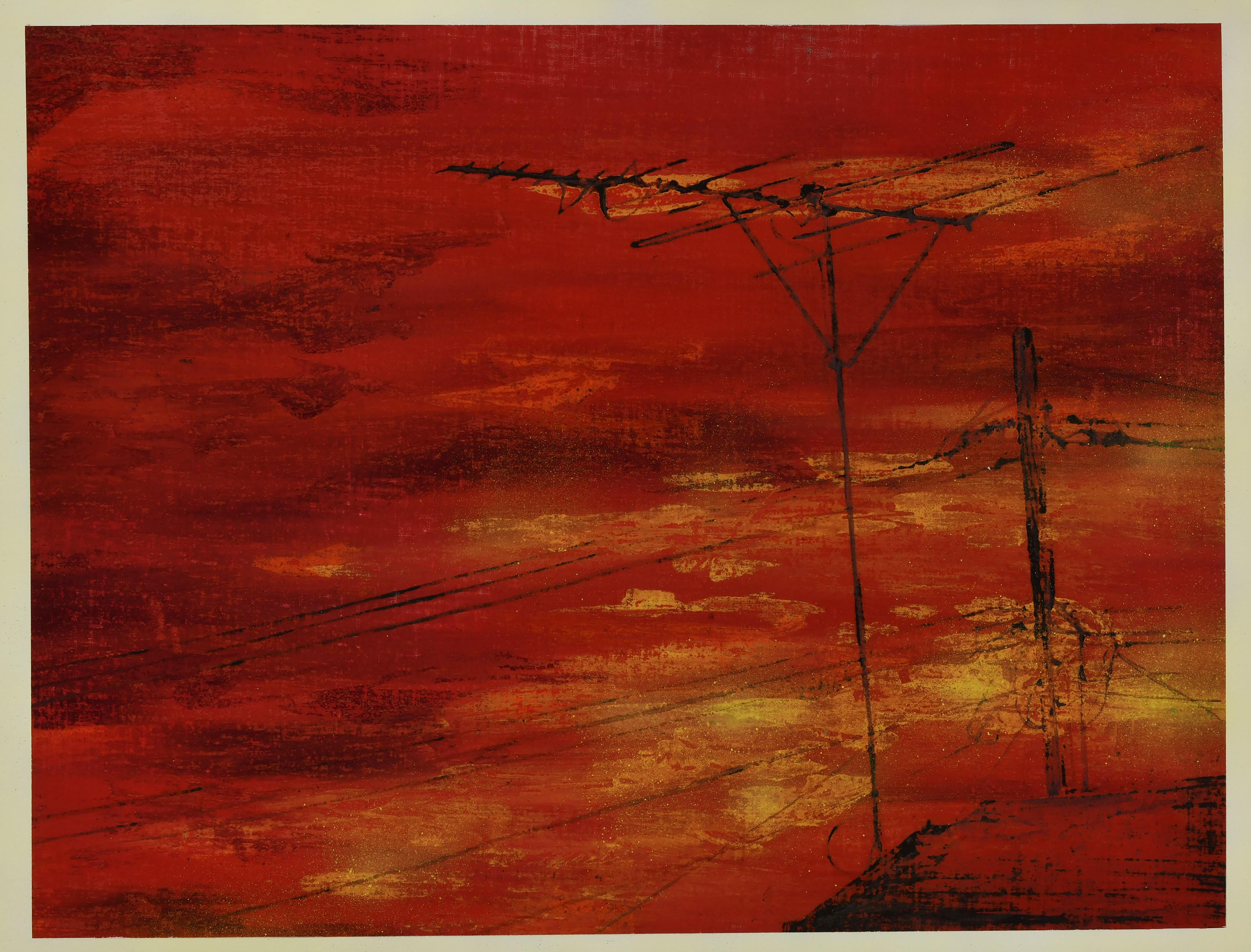 タイトルは椎名林檎の「茜さす 帰路照らされど...」の歌詞から。 大学時代になぜか撮っていたある写真を元に作った作品。 なぜ撮ったのかも覚えてないのだが、夕焼けの写真だった。 空とそれ以外が沈みゆく光のコントラストで分かれていたのが印象的で。 当時、美大生の9割が椎名林檎を好きだった(という認識)。自分も中学時代からずっと聞いていた。 この曲はファーストアルバムに入っていたので回数で言えばかなり聞いているはず。でもなんかタイトルが覚えられなかった。
