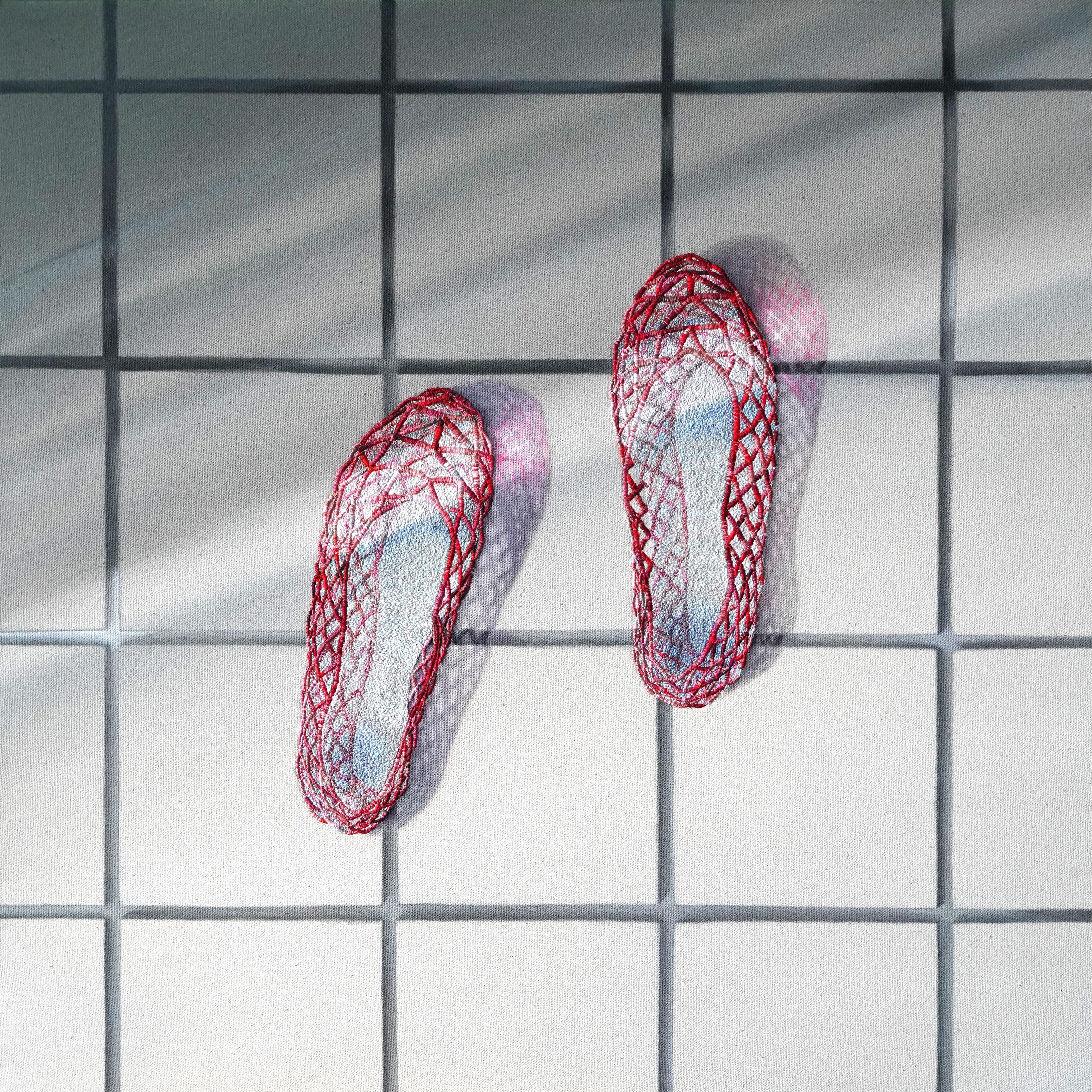 10S(53.0×53.0㎝)、綿布、アクリル絵具、糸、2025年