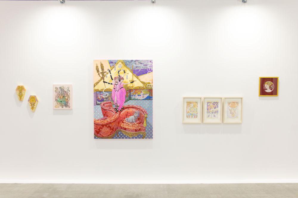 日本神話の宗像三女神(田心姫神、湍津姫神、市杵島姫神)とギリシャ神話のヘカテ、2つの文化における女神を重ね合わせて描いた作品である。宗像三女神とヘカテは、いずれも航海や道行きを守護する存在として、古来人々の祈りを受けてきた。日々の生活において、仕事や人間関係、あるいは人生そのものの行路には常に難所が潜み、私たちは見えない潮流の中を手探りで舵取りしながら進む。その不安と希望の間で、誰もが心のどこかで無事を祈り、先導を求める。本作では、神話的象徴を中心に据え、航海に関連するイメージを配置して、現代に生きる私たちの現実的な営みと祈りの姿を重ね合わせた。