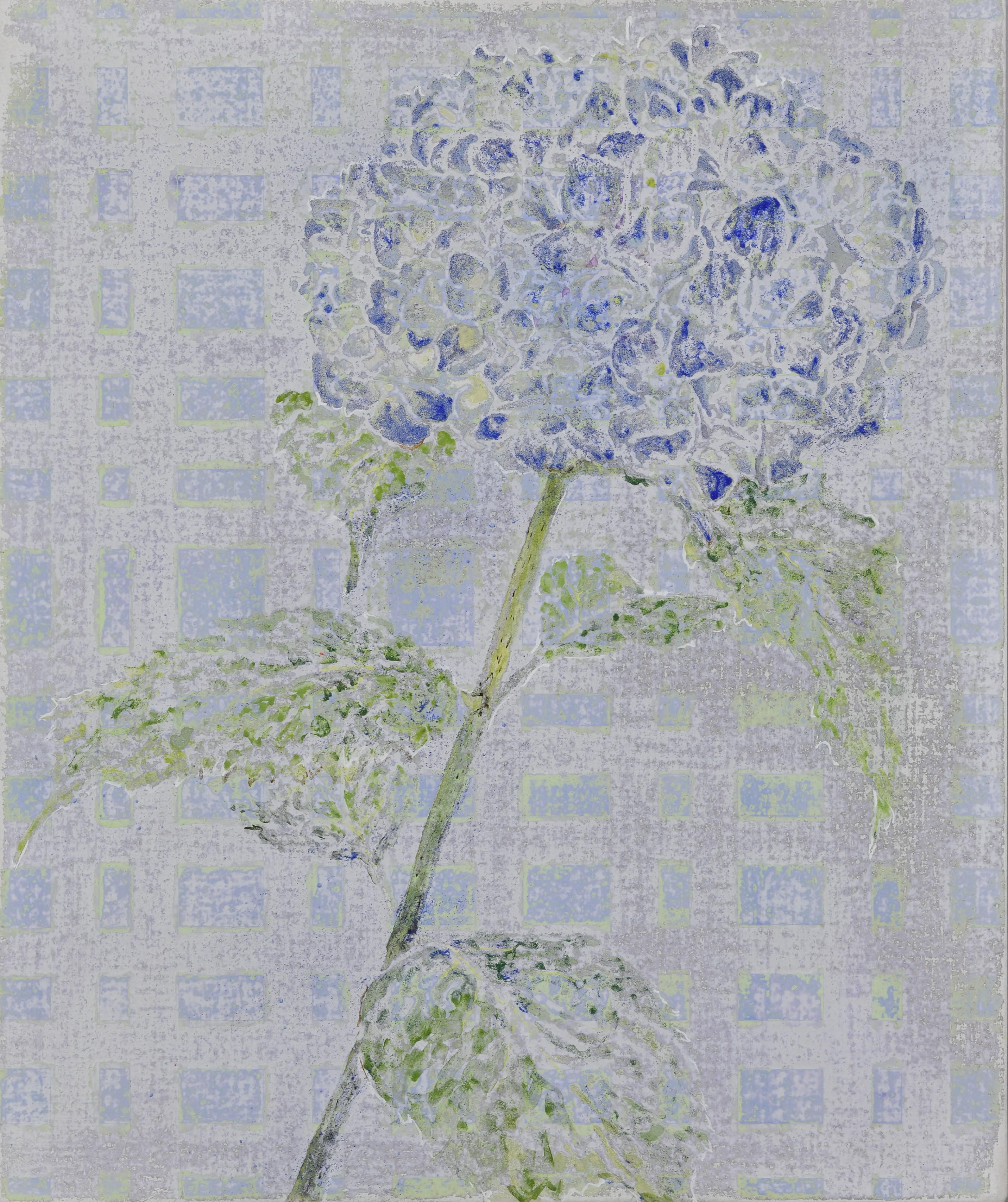 現在、アトリエにしている父の実家の敷地に咲いているアジサイを描いた。