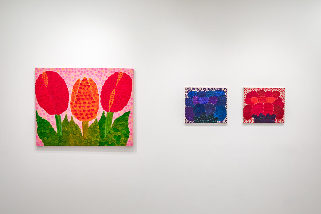 前期「点々(てんてん)」では、以前より彼女の制作の中で最も重要である点を置くという行為の中で生まれた「花」の作品群を発表させていただきます。